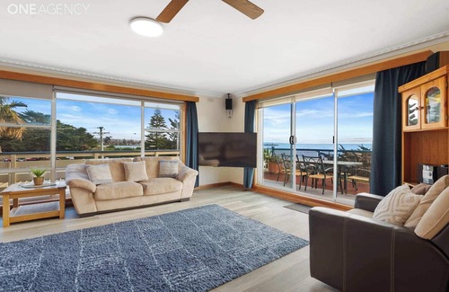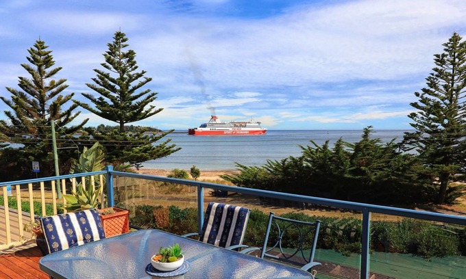 3 x Queen bedrooms + 4th bedroom with 4 single bunk-beds. (Fold-out beds available) Sleeps 10 +. Wine and dine on the Large deck with BBQ and out-door furniture. Watch the ships arrive and depart Devonport. Take a stroll along the walking track on your doorstep which hugs the foreshore and parkland. Or explore the beach..