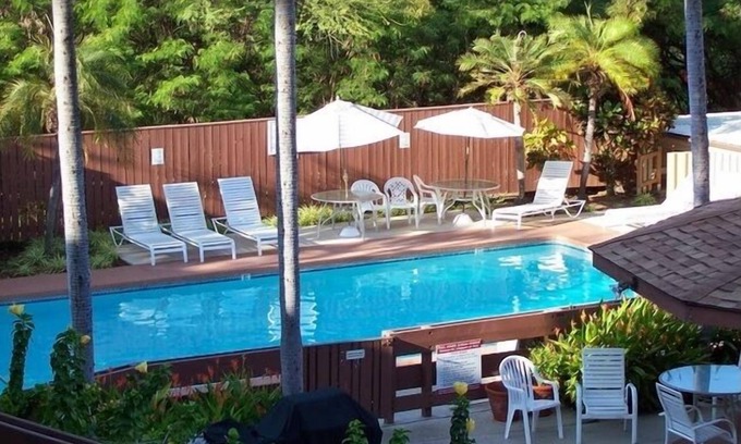 Right in the heart of Kailua-Kona on Alii Drive. Across the street from the Royal Kona Resort these condominiums provide the ideal location for your Kona vacation. The soothing waters of the swimming pool will cool you after a day in Hawaii's sun. Walk to Hugo's for evening entertainment. Barbecue your fresh catch on one of the several barbecue grills. Newly remodeled in 2013 our condo's are clean and fully equipped to save you money by having meals at your temporary Hawaiian home! Note: This is a timeshare and the state timeshare tax of $5.03 per night is collected by the resort at check-in time. Unit D1 is ground floor, large lanai May 15 - June 13 and O3 is a balcony lanai June 15 - July 13.