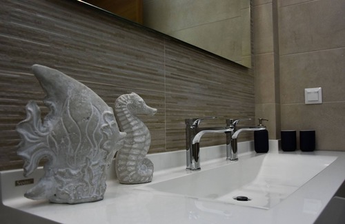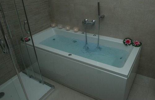 The apartment which has three separate bedrooms, one with a queen size double bed and two with two single beds, the single beds can be joined to one king-size double bed. There are also, a spacious open-plan living room with fully equiped kitchen, a fully equiped bathroom with a jacuzzi bathtube for two persons and a saperate shower with cabin.