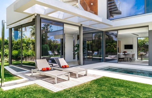 Step into a world of sophistication as you enter Villa Gladiolo. Impeccably designed interiors exude timeless elegance, with spacious living areas, five beautifully appointed bedrooms, and six luxurious bathrooms ensuring the utmost comfort for up to ten guests. One of Villa Gladiolo's most alluring features is its prime location near the golden sands of Las Chapas Beach, where guests can relax by the sea, indulge in water sports, or enjoy dining at popular spots like Nosso Beach Club, Oyana, and Luuma Beach. Marbella's city center is just a 10-minute drive away, offering world-class dining, shopping, and the charm of the iconic Old Town.