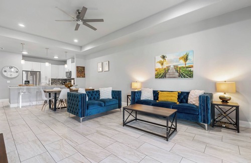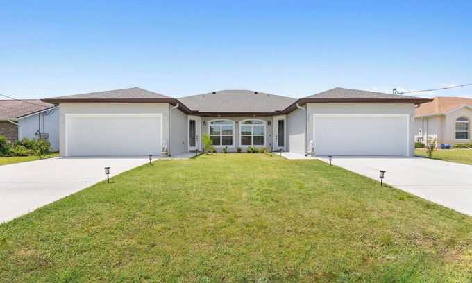 This gorgeous, newly built (2020) home is a 8 bedroom, 4 bath, 3200 sq. ft duplex. Centrally located in the exclusive C section of Palm Coast, close to the European Village, Beaches, Hammock Beach Resort, Golf Courses, Biking Trails, Shopping & Restaurants. With private and covered 4 car garage, private fenced patio and private entrance. Main attractions: 8 min from beach, 25 min from St Augustine, 25 Min from Daytona, 1.5 Hours from MCO & JAX and Disney Parks.