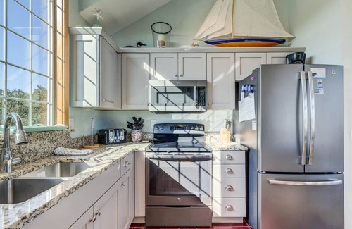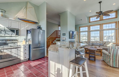 Find a great family vacation property with “All Hands On Deck!” Perfectly named for the crew you bring to make memories and unwind in the natural setting of Pine Island, Corolla. Well-kept property with private pool and hot tub. Kitchen with granite countertops. The LCD smart TV in the Great Room offers your own personal media outlet. There is a second full-size refrigerator on the ground level for drinks and snacks. Located at Myrtle Pond and less than 300 feet to the beach access, you will enjoy all day on the beach and evenings at the property. Birdwatch with your morning coffee on the back deck, eat meals in the screened porch or spend evenings grilling and hanging by the pool. If the kids get tired of the beach, bring the bikes because you have miles of private bike/jogging paths throughout Pine Island.