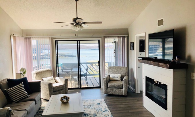 This is a newly updated 2 bedroom/2 bath condo right on the water! Located right off the Grand Glaze Bridge in Osage Beach provides easy access to shopping, eating, fishing and golfing within minutes. Bring your own boat with a boat launch located just a few minutes away or rent a boat from Dirty Ducks Rentals which is located in the same cove. This condo sleeps up to 6 and is furnished with everything you'll need- just bring your swimsuit and your family!