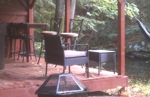 NESTLED ALONGSIDE THE WAPWALLOPEN CREEK THERE IS A CABIN, CAMPER AND TENT FOR YOUR GROUP OF FAMILY , FRIENDS TO HAVE ALL TO YOURSELVES ON 19.3 ACRES ! THE NEWLY REMODELED CABIN SLEEPS 10 PEOPLE , THE 5TH. WHEEL CAMPER SLEEPS 6 PEOPLE AND THE TENT SLEEPS 4 PEOPLE . FOR YOUR PRIVATE USE WE HAVE A VOLLEYBALL NET , SWINGS, MERRY GO ROUND , SOCCER NET , BASKETBALL HOOP AND HOT TUB AT THE CABIN SITE AND THE TENT SITE . INDIAN FIREPIT AT THE CABIN, CHARCOAL GRILL AT THE CABIN AND TENT AND CAMPER SITES . HAMMOCK AT THE TENT SITE . DO YOU NEED TO GET AWAY AND JUST RECHARGE AND RELAX THEN THIS IS THE PLACE FOR YOU ! READ YOUR BOOK YOU HAVE BEEN TRYING TO OPEN FOR SO LONG NOW AND LOOK UP TO SEE THE POND , ROAST MARSHMELLOWS AND TOAST HOT DOGS WHILE TELLING STORIES CHILDHOOD STORIES AND MAKING MORE MEMORIES ! SIP YOUR COFFEE ON THE SIDE DECK OVERLOOKING AND HEARING THE CREEK ROLLING DOWN TO THE SUSQUENHANNA RIVER . BRING YOUR FISHING ROD AND FISH IN THE WAPWALLOPEN CREEK WHERE NATIVE TROUT STILL EXIST . YOU PROBABLY WON'T WANT TO LEAVE BUT IF YOU DO THERE IS THE SKI RESORTS NEARBY, THE CROSSINGS OUTLETS, JIM THORPE HISTORICAL DISTRICT, CASINOS , ANTIQUING , ETC...…