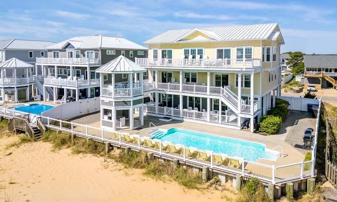 All Inn | Oceanfront | Private Pool and Hot Tub has 9 Bedrooms , 9 Bathrooms, and max occupancy of 27 people. The minimum rental for this property is 1 nights, but this can change depending on the season you plan on staying. Previous guests have rated it 2, and VRBO labeled it a top-rated House because of the excellent services rendered by the owner or manager of this House, and has consistently provided great experiences for their guests. Most families or guests that use it recommend it to their friends and some of them are repeat guests. House has a friendly neighborhood, and the Sandbridge has interesting places to visit. If you want to learn more about the House in Sandbridge, such as places to visit and things to do nearby, you can check below to learn more.