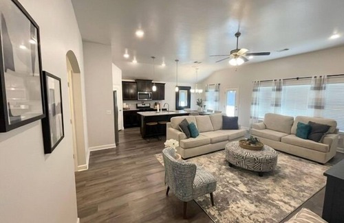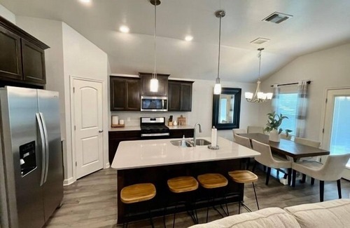 Discover modern luxury in our brand-new 4-bedroom home, conveniently located just 4 miles from Oklahoma State University's vibrant campus. Dive into the heart of Stillwater with close proximity to top dining and shopping spots. Benefit from high-speed wifi and hassle-free self check-in through smart locks. Whether you're a family, group of friends, business traveler, or just exploring the essence of Stillwater, our property offers the perfect blend of comfort, convenience, and sophistication.