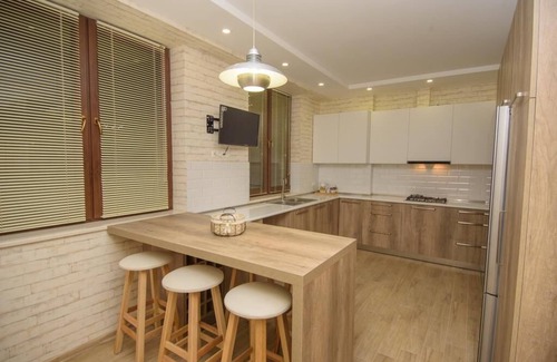 The apartment is new, very big ( 196sqm ) , wide and bright. There is big living room, separated kitchen, 3 bedroom, 2 bath, 2 balcony, 1 big terrace and e.t. We can accommodate 8 guests without extra beds. In the kitchen is everything for cocking. At the and I can say at the apartment is everything for comfort living.