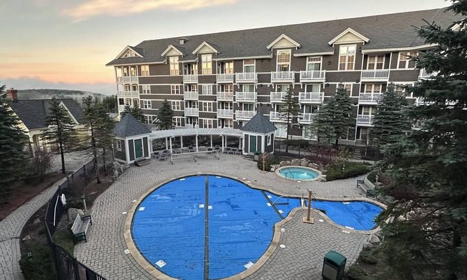 Enjoy easy access to the slopes, just steps from the Ballhooter Lift. Located in the village's most luxurious property, Allegheny Springs. You can take a dip in the heated pool/hot tub all year long. Relax on the private pool view deck, cook dinner in the full kitchen or you can head outside and browse through the shops on your way to one of the village restaurants. At days end, curl up next to the fireplace and unwind.