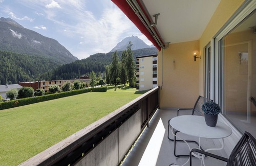 Cozy, child-friendly, stylish 2.5-room apartment, approx. 60 m² living space, comfortably furnished, very quiet location yet easily accessible. Sunny balcony with magnificent views of the Lower Engadine mountains and the large playground.