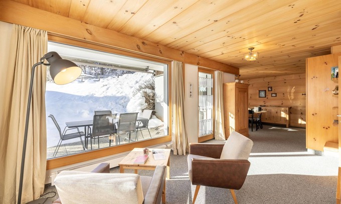This bright and cosy holiday flat is located just above the centre of Scuol. However, the local bus, shops, restaurants and the Bogn Engiadina mineral baths are just a few minutes' walk away.