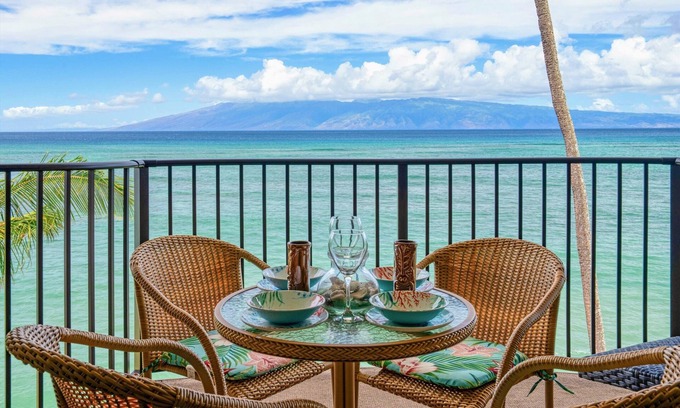 Welcome to Aloha Kai Honu Hideaway, your private oceanfront sanctuary located on the top floor of the peaceful and boutique-style Kahana Reef in beautiful West Maui. This thoughtfully appointed one-bedroom condo offers stunning panoramic views of the Pacific Ocean and neighboring Moloka‘i, framed by swaying palms and the soothing sounds of the waves.