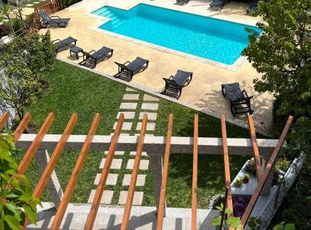 Food & DrinkTea/Coffee makerBathroomPrivate bathroom, Towels/Sheets (extra fee), Bathtub, Bathtub or shower, Toilet paper, Shower, Body soap, Toilet, Guest bathroom, Bidet, TowelsMedia & TechnologyTV, Flat-screen TVOutdoorsPatio, Balcony, Outdoor dining area, Outdoor furniture, Terrace, Private pool, BarbecueKitchenWine glasses, Refrigerator, Stovetop, Dishwasher, Kitchenware, Cleaning products, High chair, Microwave, Electric kettle, Coffee machine, Washing machine, Toaster, KitchenLiving AreaSitting area, Dining areaGeneralTrash cans, Smoke Alarm, Hardwood or parquet floors, Fire extinguisher, Heating, Private entranceViewMountain view, Quiet street view, Garden view, Pool view, ViewBedroomChildrens' cribs, LinensAccessibilityUpper floors accessible by stairs onlyBuilding CharacteristicsDetachedRoom AmenitiesNon-feather pillow, Fold-up bed, Drying rack for clothing, Clothes rack, Socket near the bedPool and SpaHeated pool |