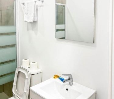 BathroomHairdryer, Toilet, Toilet paper, Towels/Sheets (extra fee), Private bathroom, Shower, Body soap, Shampoo, TowelsMedia & TechnologyFlat-screen TV, TVGeneralIroning facilities, Trash cans, Heating, Iron, Tile/Marble floor, Air conditioning, Fan, Hardwood or parquet floorsOutdoorsBalconyKitchenCoffee machine, Refrigerator, MicrowaveLiving AreaSofaViewQuiet street view, View, Sea viewBedroomChildrens' cribs, Wardrobe or closet, LinensBuilding CharacteristicsSemi-detachedRoom AmenitiesClothes rack, Non-feather pillow, Sofa bedFood & DrinkBottle of water |