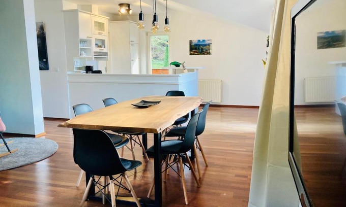 Food & DrinkTea/Coffee maker, Chocolate/CookiesBathroomShower, Hairdryer, Toilet, Private Bathroom, Bathtub or shower, Towels, Toilet paperMedia & TechnologyTV, Cable channels, Flat-screen TVGeneralIron, Ironing facilities, Heating, Private entrance, Trash cans, Smoke Alarm, Fire extinguisher, Key accessOutdoorsBalcony, Outdoor furniture, Outdoor dining areaKitchenRefrigerator, Electric kettle, Coffee machine, Dining tableLiving AreaSitting areaViewView, Garden view, Mountain view, Quiet street viewActivitiesSaunaBedroomWardrobe or closet, LinensAccessibilityUpper floors accessible by stairs onlyBuilding CharacteristicsDetached, Private apartment in buildingEntertainment & Family ServicesBooks, DVDs or music for childrenRoom AmenitiesNon-feather pillowCleanliness & disinfectionHand sanitizer |