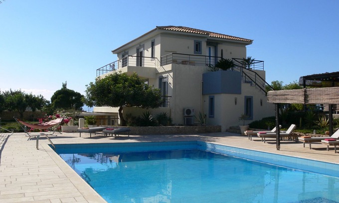 Each of our three very spacious apartments with private terrace has sea and mountain views and is beautifully and comfortably furnished in a tasteful style. Modern and very well equipped kitchens and bathrooms. Of course, there is air conditioning and well functioning heating. The pool (11.60 m x 6.50 m) and the beautiful, large beaches invite you to swim. The terrace with barbecue has an amazing view on the surrounding landscape. There is a large, closed and secured space to park your car. Everything else is within less than 3.5 km: bars, restaurants, taverns, shops, car and bicycle rental, supermarkets, wellness salons, doctors and pharmacies. The beach with taverns is only 1.5 km away. Very recommendable for day trips are the archaeological sites of Mycenae, Argos or the theatre of Epidaurus. Also Nafplio with its citadel, shops, cafés, restaurants, streets and squares is well worth a visit.