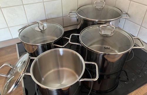 - All kitchen equipment (cutlery, pots, pans, cutlery, plates, bowls, glasses, wine glasses, champagne glasses, can openers, salt and pepper shakers ...)