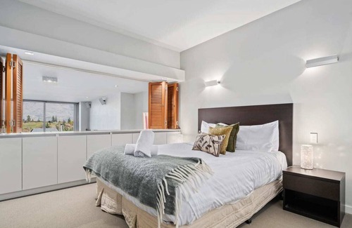This spacious 70 squae meter apartment provides a bedroom with stunning views overlooking Queenstown scenery, allowing you to wake up to captivating vistas each morning.