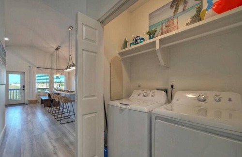 Add convenience to your stay with a full-size washer & dryer in the hallway laundry closet on your way to 4 bedrooms and 3 full bathrooms. 2 King Suites with private bathrooms. 1 Queen Bedroom and, 1 Bunk Room - 2 twin/full bunk beds and a twin trundle. Well suited floor plan for privacy and comfort for 12 people!