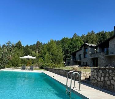 Food & DrinkTea/Coffee makerBathroomBathtub or shower, Hairdryer, Toilet, Private bathroom, Conditioner, Body soap, Free toiletries, Towels, Toilet paper, Shampoo, ShowerMedia & TechnologyStreaming service (like Netflix), Flat-screen TV, TVGeneralAir conditioning, Carpeted, Hardwood or parquet floors, Ironing facilities, Private entrance, Heating, Mosquito net, Fan, Soundproof, Iron, Trash cansOutdoorsTerrace, Patio, Outdoor furniture, BalconyKitchenWine glasses, High chair, Stovetop, Kitchenware, Toaster, Oven, Coffee machine, Dining table, Microwave, Kitchen, RefrigeratorLiving AreaSofa, Desk, Sitting area, Fireplace, Dining areaViewGarden view, Mountain view, Pool view, ViewBedroomLinens, Childrens' cribs, Wardrobe or closetBuilding CharacteristicsPrivate apartment in building, DetachedRoom AmenitiesSofa bed, Socket near the bedPool and SpaPool with a view, Pool towels |