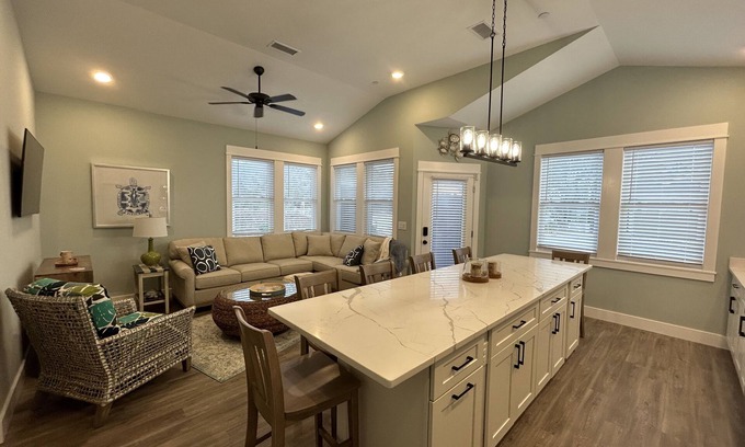 New in 2022, “Always About The Beach” features attractive furnishings, a well equipped kitchen, two king bedrooms, two full bathrooms and a queen pull-out sleeper sofa. Outdoor features include: BBQ grill, outdoor shower and hose. Additionally, the community offers a pool with cabanas on the pool deck.
