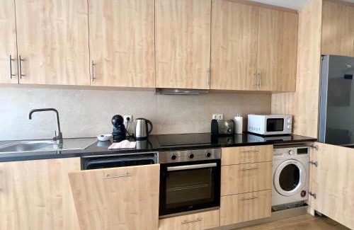Media & TechnologyFlat-screen TV, TVGeneralHeating, Air conditioningKitchenDishwasher, Kitchenware, Kitchen, Wine glasses, Microwave, Washing machine, Dining table, Refrigerator, Toaster, Oven, Electric kettle, Stovetop, Coffee machine, DryerLiving AreaSofa, Sitting areaBathroomTowels, Toilet paper, Private bathroom, Bathtub or shower, Body soap, ToiletBedroomWardrobe or closet, LinensBuilding CharacteristicsPrivate apartment in buildingRoom AmenitiesNon-feather pillow, Socket near the bedPhysical distancingSingle-room AC for guest accommodation |