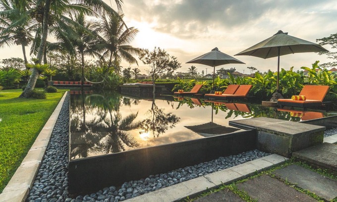 A sanctuary in the hills of Ubud, the villa is an intimate resort that prides itself on being a home away from home. Situated on 3,000 square metres of land above the villages of Sebali and Keliki, it overlooks the river Wos on the edge of a ridge surrounded by paddy fields. Combining traditional Balinese architecture with the simplicity and clean lines of modern design, the villa comprises three houses connected by a walkway. It accommodates up to 14 adults comfortably and has adequate common areas to ensure sufficient privacy—ideal for family friends or up to seven couples.