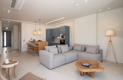 A little piece of paradise. Melia Luxury Villa II, is a spectacular luxury sea side villa, with a swimming pool and spacious outdoor lounges, making it an ideal family or friends favourite for summer holidays for years to come. From the moment you step into the Villa you’ll be welcomed into a truly unique space, one that only a privileged few will ever experience. Boasting effortlessly chic interiors, spectacular settings, this sea side villa is yours to remember. The allure of this home is impossible to ignore. With plenty of space for the whole family to unfurl in, here is a home where loved ones can set themselves free. This holiday home flaunts exquisite interiors that exude a certain ethereal elegance, guarantee a perfectly relaxing and rejuvenating stay. A striking structure on Tavronitis close to Chania town, this self-catering hideaway, is a nod to the modern Cretan summerhouse.With an outdoor private 50sqm infinity pool (can be heated with extra fee) with hydromassage features, this is a spectacular 250m2 villa, that can host up to 10 guests to unwind, just a few steps away from the Sea. The unique home is also wheelchair accessible, featuring a ramp, access to the Ground Floor pool & living - cum area, with a specially designed wheelchair friendly bedroom and bathroom also.
