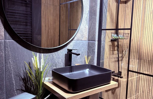 Apartamentul este dotat cu aer conditionat, Tv cu ecran plat, WiFi. Bucataria este complet utilata, expresor cafea, masina de spalat vase, masina cu uscator pentru rufe. Baia este cu dus, iar pentru confortul dumneavoastra baia este prevazuta cu uscator de par, halate de baie si articole de toaleta gratuita.