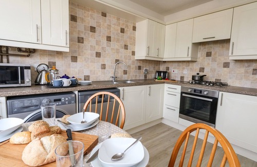 Amenities: Gas central heating. Oven, gas hob, microwave, fridge, freezer, washing machine, dishwasher. TV, PlayStation 4, WiFi. Fuel and power inc. in rent. Bed linen and towels inc. in rent. Cot, highchair and stairgate available. Allocated off-road parking for 1 car. Enclosed patio with furniture. Two well-behaved pets welcome, charge of £21 per pet per week. Sorry, no smoking. Shop and pub 0.4 miles, beach 0.9 miles.