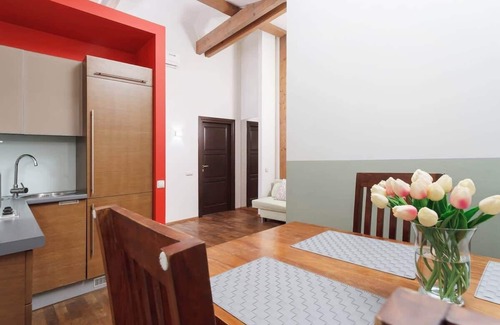 The apartment is located in Krakow in a beautiful area on Długa Street. The apartment is located on the 3rd floor in a building without a lift. The apartment is situated in a great location - only 300 meters from the Old Market Square and 500 meters from the Wawel Castle. The historic district of Kazimierz is only 1 km away. The nearest grocery store is also very close - just 50m from the apartment. If you want to go to the atmospheric restaurants on the Vistula Boulevards, reaching them will take less than 10 minutes on foot, as they are located 2 km away. Next to the apartment you will also find a bus stop that will take you to the most important points of the city. And if you are traveling by train - the distance from the Main Railway Station to the apartment is only 500m.