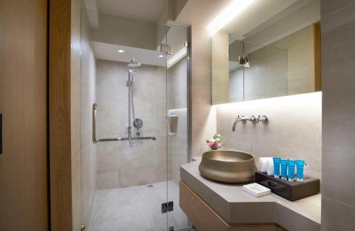 Food & DrinkMinibar, Bottle of waterBathroomBody soap, Bidet, Free toiletries, Shower, Hairdryer, Toothbrush, Shower cap, Towels, Toilet, Shampoo, Slippers, Conditioner, Toilet paperGeneralKey card access, Fire extinguisher, Safe, Air conditioning, Tile/Marble floor, Smoke AlarmMedia & TechnologyCable channels, Flat-screen TV, Telephone, TV, Satellite channelsServicesWake-up service, Wake-up service/Alarm clockKitchenRefrigerator, Electric kettleLiving AreaDeskBedroomAlarm clock, Wardrobe or closetRoom AmenitiesClothes rackExclusive servicesFree gym accessPhysical distancingSingle-room AC for guest accommodationCleanliness & disinfectionHand sanitizer |