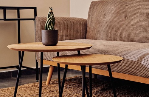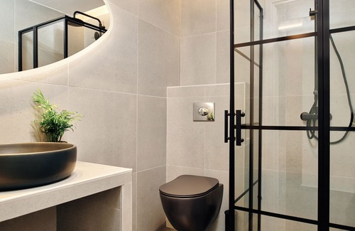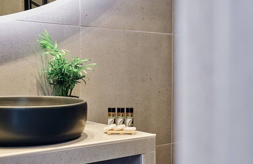 The suite is accessible by stairs. It measures 56 sq.m. and can sleep up to 5 adults and a baby. The suite has two bedrooms and a bathroom with a shower. The first bedroom is equipped with two single beds that can be combined into a king sized one, whereas the second bedroom has one queen bed as well as a sofa-bed. In one bedroom, the guests will find a mini-fridge, a cupboard, an espresso machine and a kettle.