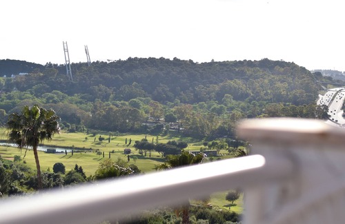 Located in a small residential condominium, the apartment includes one private parking space and offers unobstructed views over the Jamor golf course.