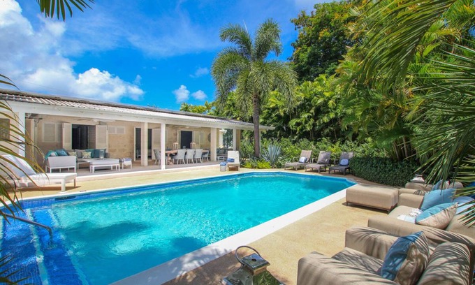 Palm Grove 1 is a lovely peaceful, bright and spacious 4 bedroom / 3 bathroom villa, with a large private pool, enclosed in a secluded lush tropical garden within the safe and established neighborhood of Mullins. This is the perfect spot if you are a first time visitor to Barbados or a long time repeat - anyone looking to enjoy Barbados fully will love this spot. The villa is on a quiet residential road, within easy walking distance of 2 glorious beaches - Gibbs and Mullins, and numerous bars/restaurants while only 5 mins from Speightstown and 10 mins from Holetown.