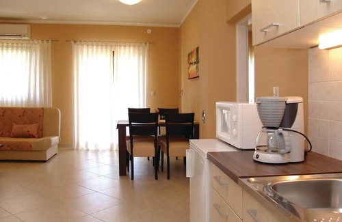 Spend your holiday here in one of the practical and functionally furnished holiday apartments, which are located in an apartment building. Stancija Vodopija is located near the popular and attractive holiday resort of Pore. Holiday apartments CIE190, CIE244 and CIE245 are located on the ground floor, while apartment CIE246 is slightly higher up on the second floor. The well-tended garden and the typical Istrian taverna, where you can round off your holiday with a cosy barbecue and sit together for a long time if you feel like it, contribute to a feel-good holiday. Spend romantic moments on the beach at sunset or visit interesting galleries and art exhibitions.