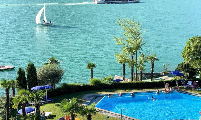 Bissone 9 km from Lugano: Beautiful, comfortable apartment block "Lago di Lugano", surrounded by trees and meadows. On the outskirts Bissone, in a quiet, sunny position, excellent location: right in the centre but still quiet, 20 m from the lake. For shared use: park, beautiful garden to relax, swimming pool heated (seasonal availability: 01.May. - 30.Sep.) with internal staircase. Unconventional pool shape. Shower/WC in the pool area, children's pool, outdoor shower. In the house: fitness room, lift, central heating system, washing machine (extra), tumble dryer (for shared use, extra). Motor access to the house. Parking at the house. Bus stop "Linie 439" 1 m, railway station "Melide" 2.6 km, bathing lake "Lago di Lugano" 5 m. Golf course (18 hole) 15 km. Nearby attractions: Lugano, Foxtown Outlet, Mendrisio, Swissminiatur, Melide, Mercato Luino, Ponte Tresa, Como IT, Parco San Grato, Carona. Well-known ski regions can easily be reached: Nara, Valle di Blenio, Carì, Leventina, Airolo. Well-known lakes can easily be reached: Lago di Lugano, Lago di Como. Hiking paths: San Salvatore, Monte Bré, Tamaro und Splash+Spa, Rivera, Monte Generoso. Please note: suitable for families, suitable for seniors. The owner does not accept any groups. The owner does not accept any youth groups. The photograph shows a typical example. Additional accommodations can be booked. Property ref. CH6816.50. Is situated on the same property. All houses/apartments are individually designed/furnished.