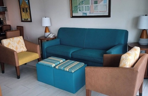 There is a workout gym on the property, shops for souvenirs and a small deli for groceries and a salon. Enjoy two King bedrooms with full bathrooms, a fully equipped kitchen and views to take your breath away. Our condo is your home away from home in the Caribbean as you discover St Maarten. There is a security gated parking lot and passes will be given at check in. The Royal Palm Hilton Vacation Club is located on Simpson Bay where you can walk to dining, music and shopping. (This unit was previously owned by Van Neuman).