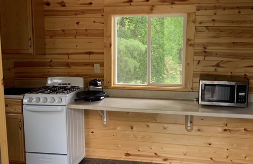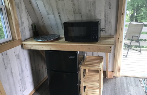 Ruff'n It is a 14' x 16', 224 square foot dream of a tiny cabin in the woods. It is perfect for a weekend getaway. There is a queen sleeper sofa, a loft for storage, a small kitchenette, includes coffee pot, microwave and toaster oven. Cozy and comfortable it is the perfect way to enjoy a glamping experience. Nearby there is an outdoor bathroom newly completed with a tiled shower. There are two outdoor kitchens that are also close by that have refrigerators and stoves available for use. Ruff'n It has a small deck attached, perfect for relaxing in the evening. There is a small charcoal grill, you will need to bring your own charcoal. This tiny cabin is not accessible. There are 3 lakes on the property perfect for fishing or swimming as well as 48 acres with plenty of trails through the woods. The town of Walker, MN is only 3 miles away.