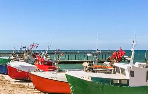 Amazing Home In Chlopy With Wifi is located in Chłopy, just a 12-minute walk from Sarbinowo Beach and 22 miles from Town Hall. This beachfront property offers access to free Wifi. The property offers a children's playground and outdoor furniture. This vacation home includes 2 bedrooms, a living room and a TV, an equipped kitchen with a dining area, and 1 bathroom with a shower. For added privacy, the accommodation features a private entrance. Kołobrzeg Railway Station is 23 miles from the vacation home, while Kolberg Pier is 23 miles from the property. Solidarity Szczecin-Goleniów Airport is 82 miles away.