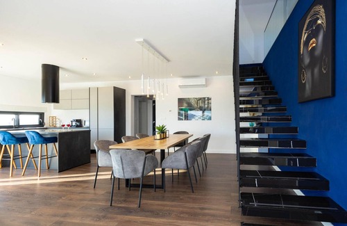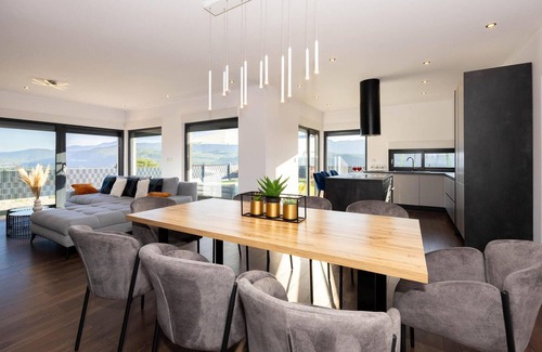 The idyllic and quiet house welcomes you in a fantastic panoramic location. Here you can really relax and enjoy the tranquility and the beautiful view of the landscape. Floor-to-ceiling panoramic windows let you fully enjoy the view in the house, pool table and fitness equipment ensure that you are well entertained during your vacation.