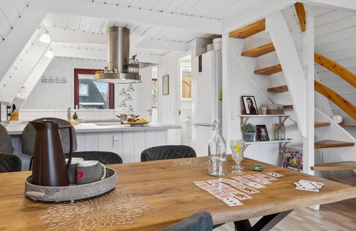 This vacation home offers ideal conditions for a relaxing vacation with family or friends. The house is spread over two floors and has 3 bedrooms equipped with a double bed and 6 single beds. The heart of the house is the beautiful living area with a large sofa, dining table and open kitchen. Spend cozy evenings here in front of the TV or having a delicious dinner with all guests.