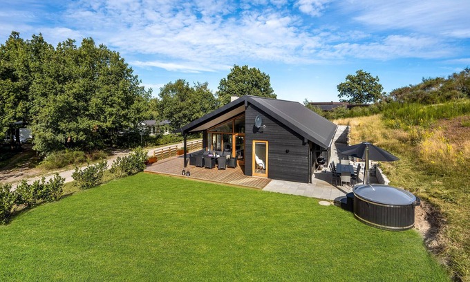 A few minutes separate you from the water, and here you can enjoy a pleasant tranquility surrounded by meadows and forests: look forward to your time in this summer house in classic Danish coziness. A large terrace, the large Finnish wooden bath, fireplace and homely furnishings including a pizza oven contribute to this - here you can simply enjoy yourself and let things be.