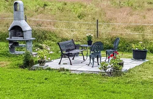 If you prefer a vacation mix of hiking, fishing and bathing, you have to spend your vacation here. This vacation home promises a happy family time surrounded by beautiful nature. Make your packed lunch early in the morning in the kitchen for today's fishing trip. Now off into nature! Enjoy the incredible silence while fishing and eat your packed lunch in the rowboat. Take the fresh fish home and prepare it on the outdoor stone grill while the kids play catch games on the lawn. The sofa invites the kids to watch a movie and on the covered terrace the rest of the family can chat over good wine.