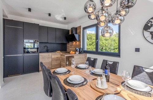 The modern vacation home is located just a short drive from the center of Rijeka, in Kostrena, an old, popular coastal town. The town is known for its beautiful beaches, clear sea and a 3 km long promenade along the coast with restaurants and bars. The beaches are a short walk from the vacation home. You can also enjoy diving, sailing, jet skiing as well as cycling and jogging. Archaeological finds can be found on the hills above Kostrena, from where you can enjoy a beautiful panoramic view. The beautiful island of Krk and the mountains of Ucka, Platak and Gorski Kotar can be reached within a pleasant drive.