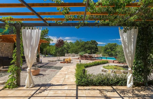The perfect place to relax in the midst of soothing nature - Villa Veselici in eastern Istria. The villa is an old, beautifully restored stone house that exudes the charm of a traditional home yet offers the comfort of a modern vacation home. The villa is set on a 11500 m2 plot of land, allowing you to enjoy complete privacy. With the comfort of a private pool, this villa offers exactly what you need to escape the stresses of everyday life. The open plan first floor consists of a cozy living room and a fully equipped kitchen with dining area. There are a total of 3 bedrooms located on the upper floor. They each have a comfortable double bed, air conditioning, TV and an en-suite bathroom. The third bedroom also has a sofa bed for extra sleeping space. This room also has access to the lovely terrace from where you can enjoy the magnificent views.