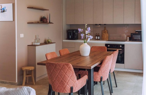 This stylish villa in Mokrice invites you to enjoy a relaxing holiday surrounded by picturesque nature. The modern furnishings create a harmonious atmosphere, while the light-flooded rooms provide an airy ambience. You can prepare culinary delights in the well-equipped kitchen and then enjoy them on the terrace. After an active day, relax in the private hot tub or take a refreshing dip in the shared swimming pool. Particularly practical: depending on availability, the neighbouring holiday home can also be booked - ideal for a holiday with friends or extended family.