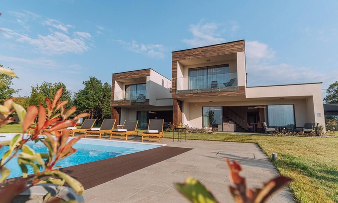 Experience pure relaxation in this modern villa with whirlpool and pool.