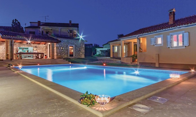 Here you have a very rural setting, the village consists of only a few houses. You can relax in the open air here, as there is a covered terrace next to the pool and a small konoba with a fireplace and kitchen. The property is also child-friendly. The holiday home consists of two residential units that can be accessed from inside or outside. In one apartment you have the kitchen with living room and three bedrooms and in the other a modern kitchen, living room, bedroom and bathroom. The house is ideal for two families. Guests also have access to communal lounges. Beautiful cycle paths lead away from the house. In about 10 minutes by car you can reach the well-known visitor farm 'Goloriki dol', where you can see domestic animals and buy excellent Istrian specialities. The house is the ideal holiday base for a holiday close to nature. But you don't have to miss out on art and culture, because nearby you will find the historic artists' town of Labin, the ancient city of Pula or the holiday resort of Opatija, a real pearl on the Istrian coast.