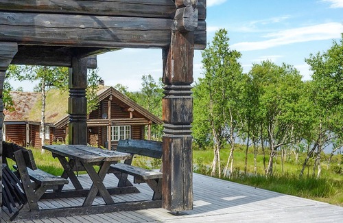 Your impressive log cabin combines rustic charm with modern comfort and is nestled in an idyllic landscape on the edge of the Hardangervidda, one of the largest high plateaus in Europe. The holiday home exudes a cosy atmosphere thanks to its traditional construction with thick wooden beams and grass roof. Inside, you will find bright, spacious living areas that invite you to linger. The sofas, which are arranged in different living rooms, offer the ideal place for relaxing evenings after a day full of adventure. The windows open up a wide view of the surrounding nature. Cook together in the modern kitchen and enjoy your meals with a view of the mountains.