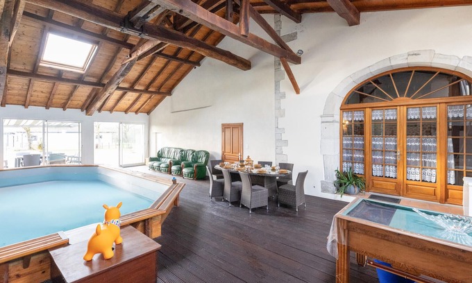 Spend a varied break in this charming holiday home with indoor pool and garden.